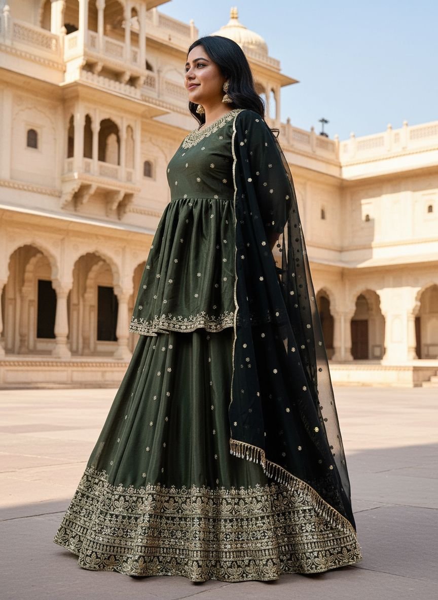*❤️💐Featuring chinon silk kurti & lehenga with elegant dupatta in georgette with beautiful sequins embroidery work Quality is worth paying👌💐❤️*