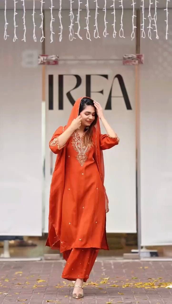 *👉❤️PRESERNTING NEW PAKISTANI READY TO WEAR COLLECTION WITH EMBROIDERY SEQUENSE WORK TOP-PENT WITH DUPATTA 👍*