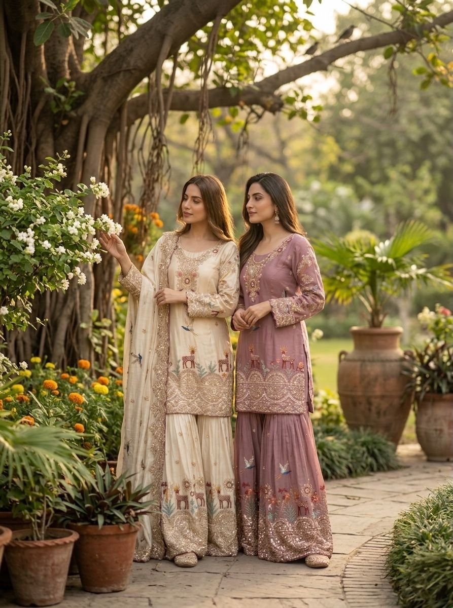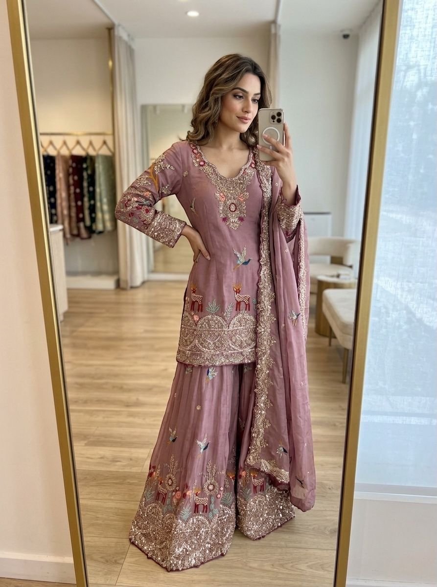 👖*Sarara Fabric*👖: Pure *Cinon Silk* With Embroidery Molty Nidal 5mm Sequences Work With Elastic