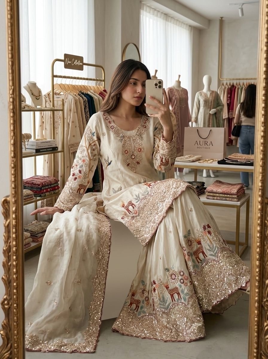 🩱*Top Fabric*🩱: Pure *Cinon Silk* With Embroidery Molty Nidal 5mm Sequences Work With Full-Sleeves