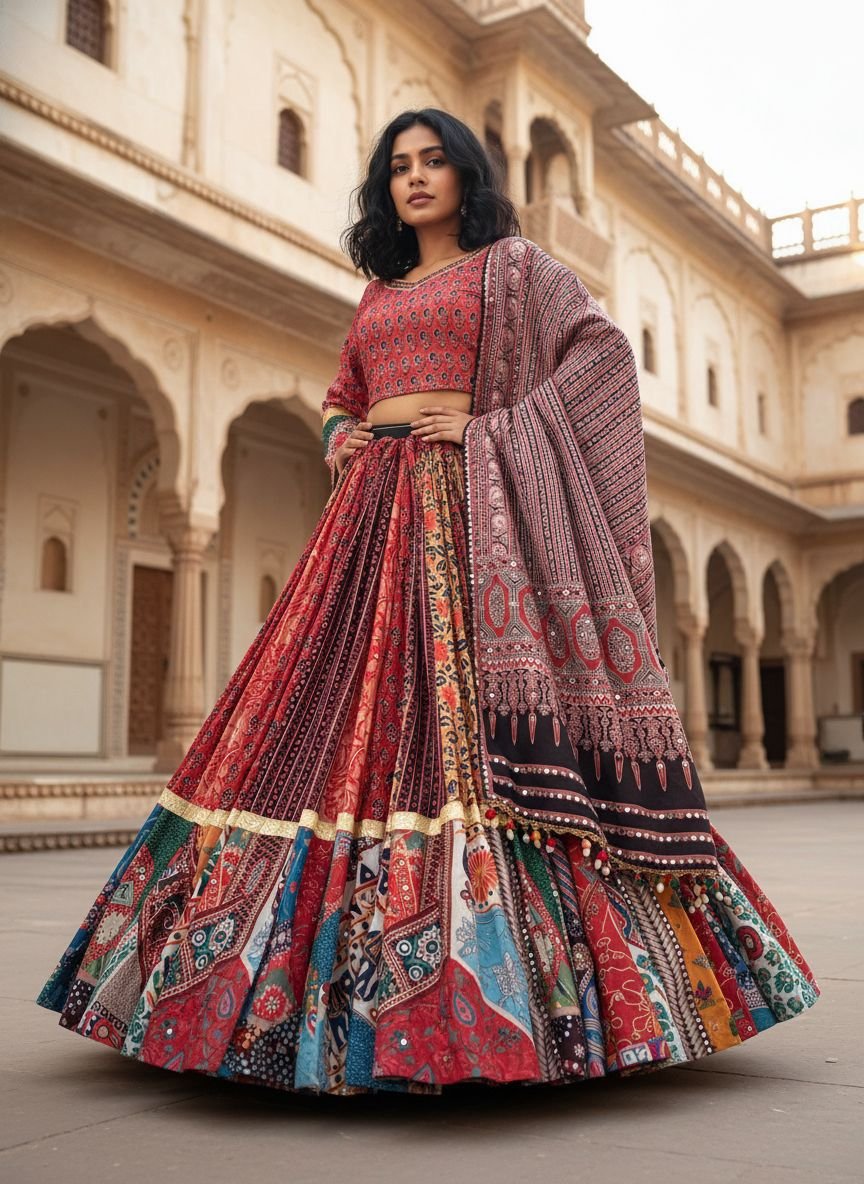 Multicolor patchwork lehenga choli with designer flared skirt festive ethnic wear for women