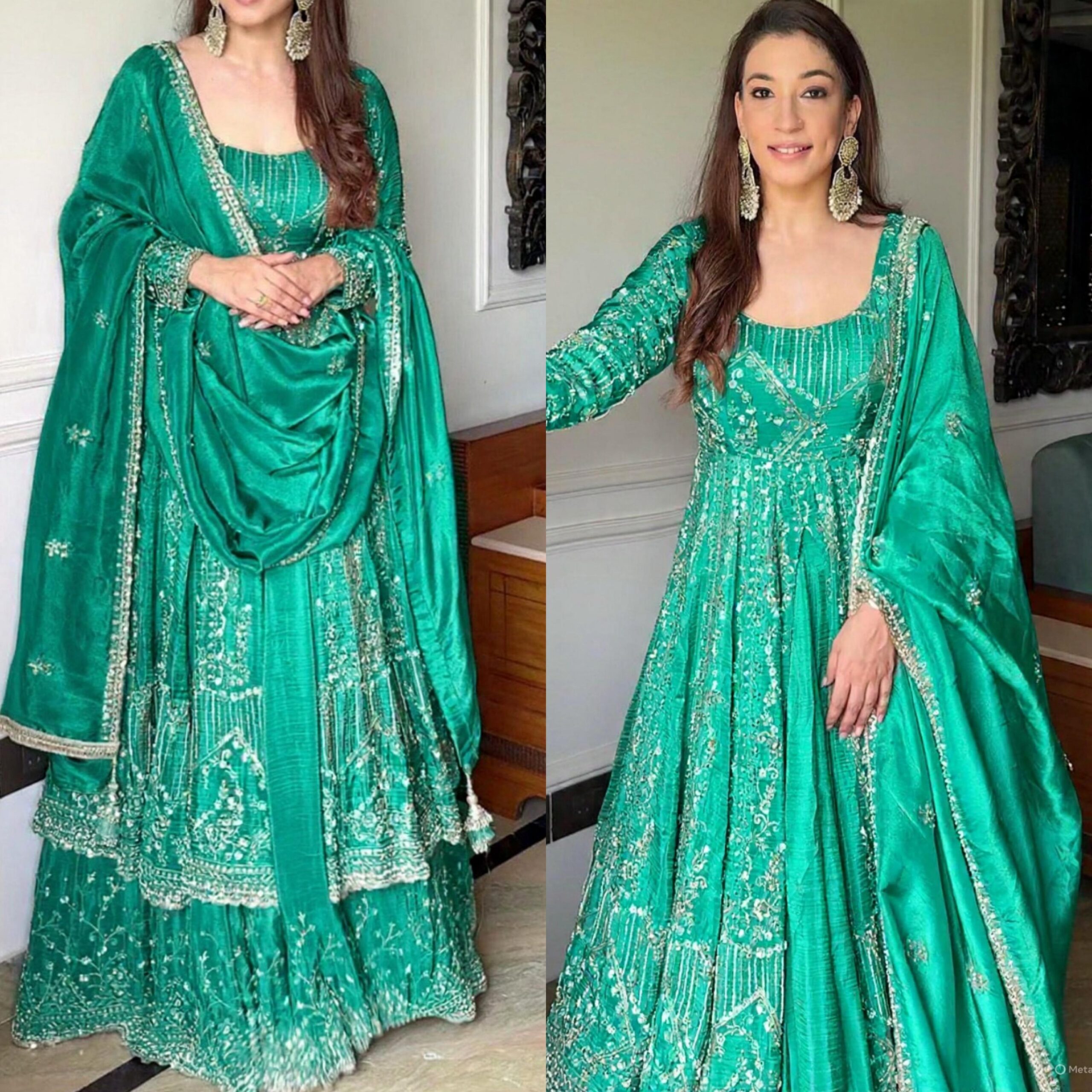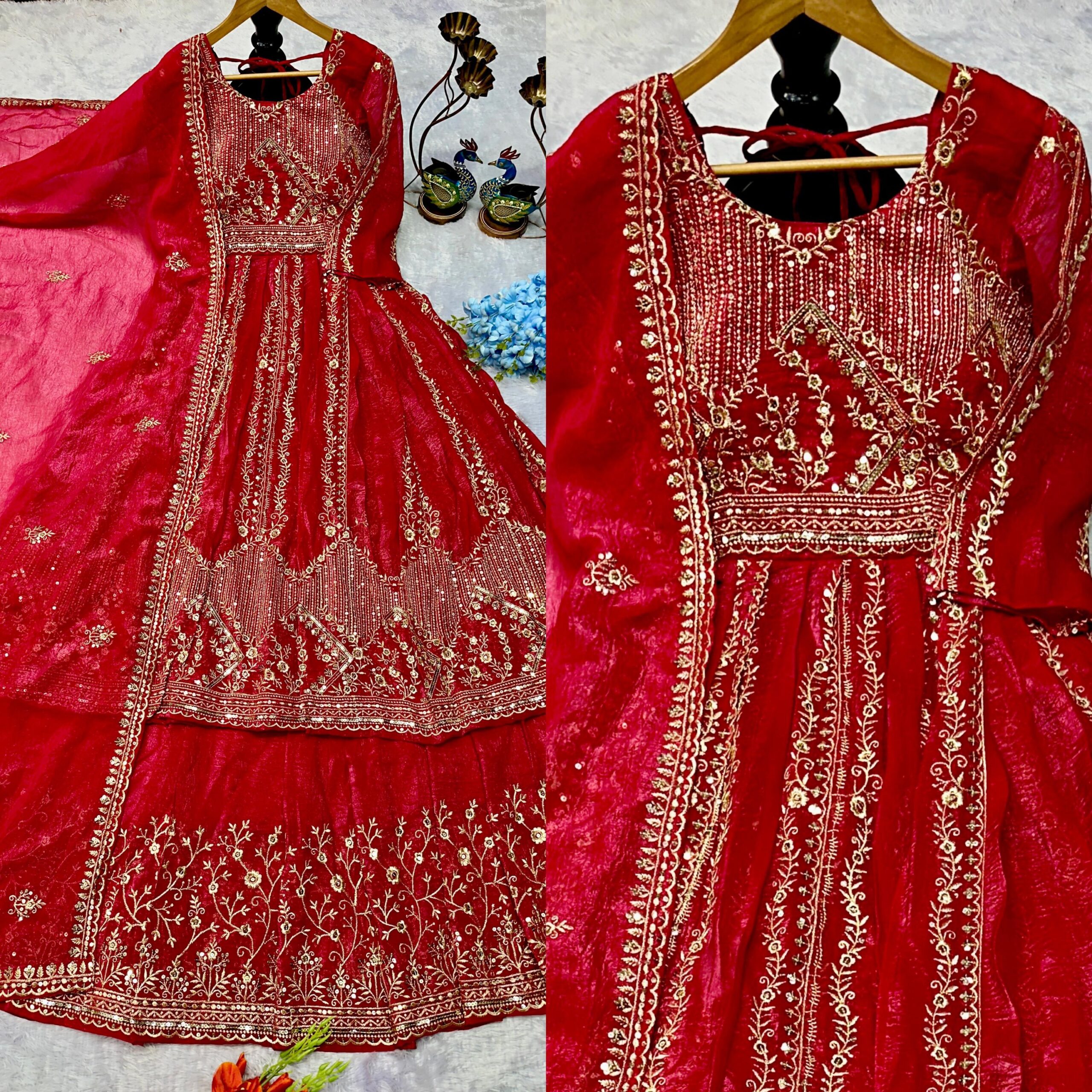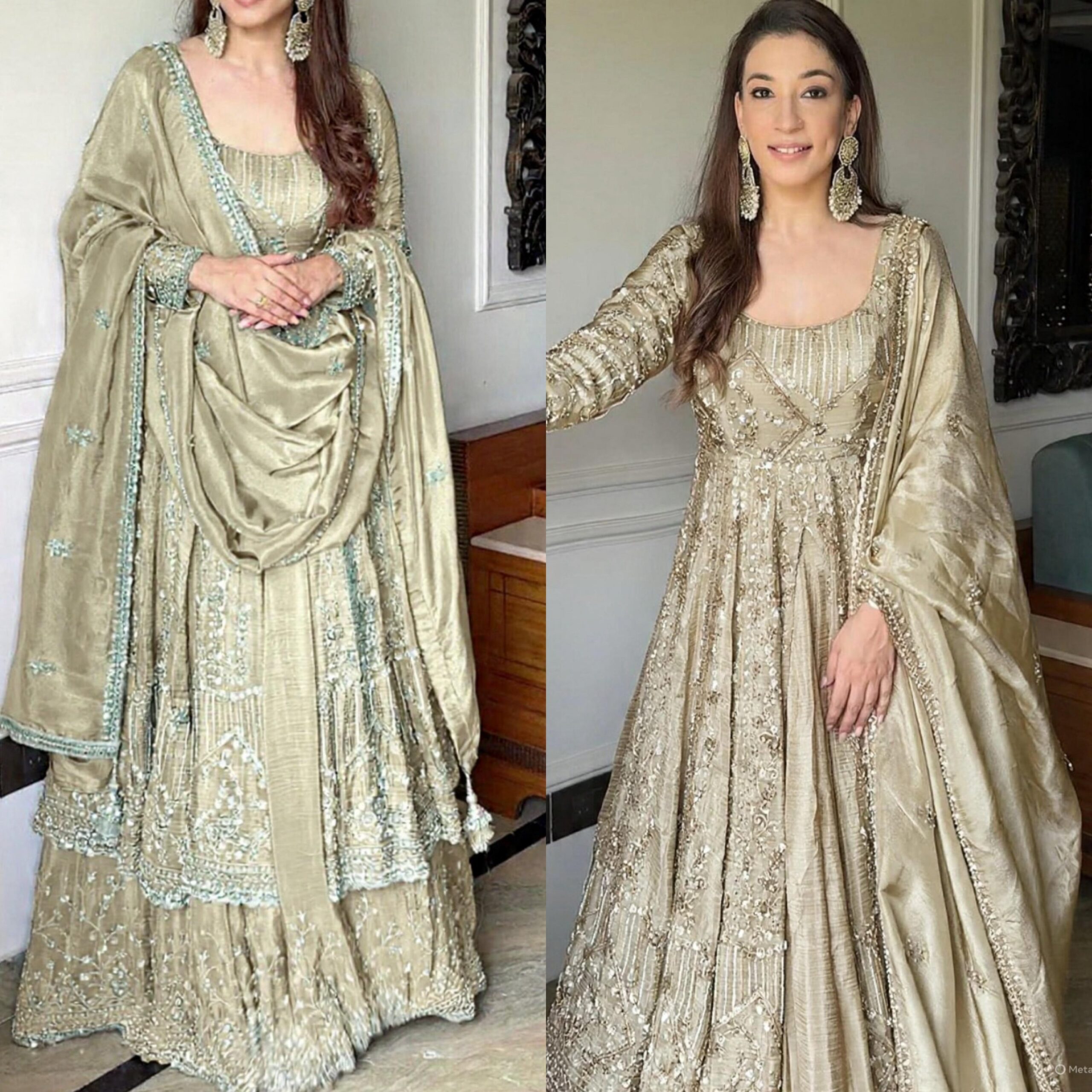 👗 *GOWN FABRIC* :HAVY CRUNCHI SILK WITH EMBROIDERY WORK AND FULL SLEEVES