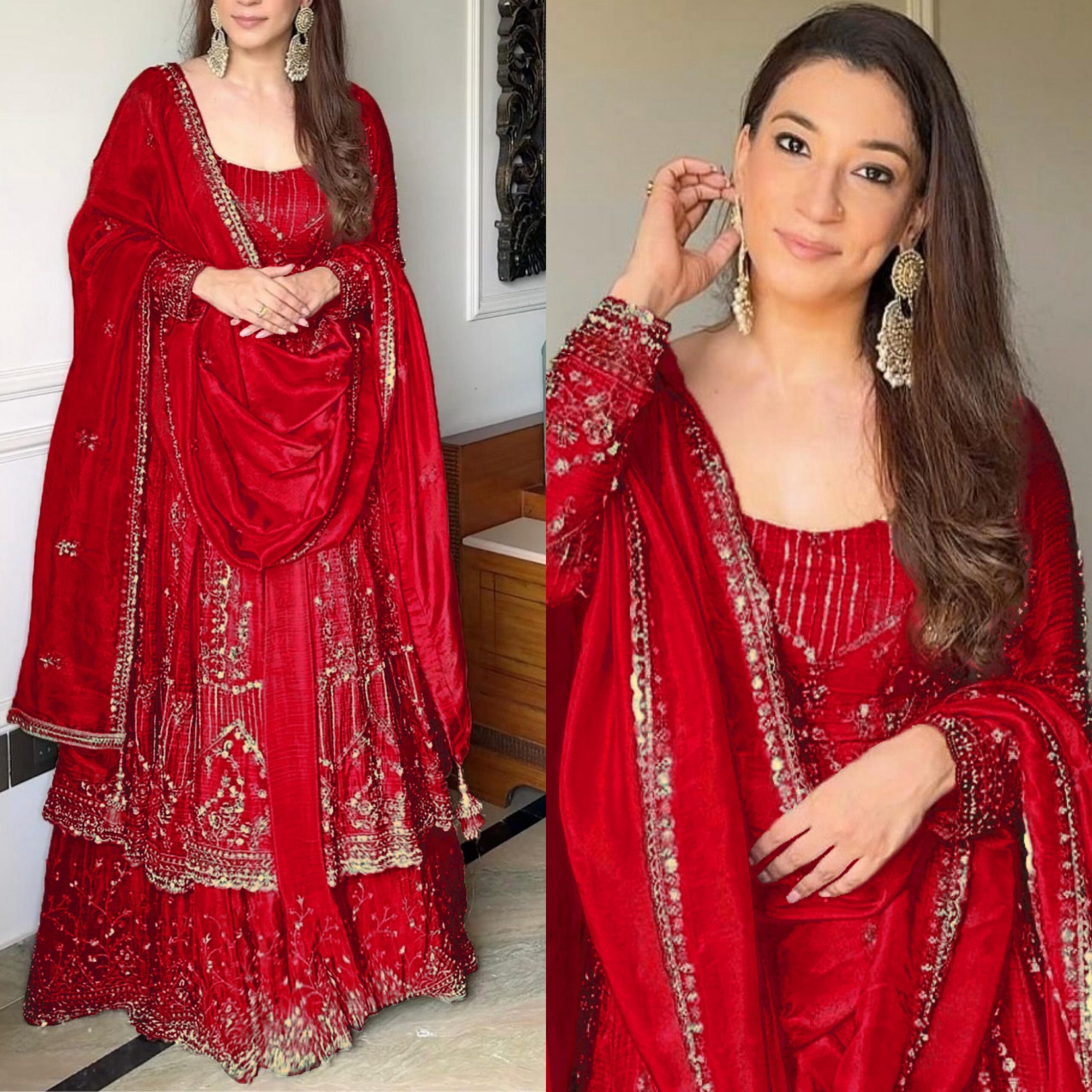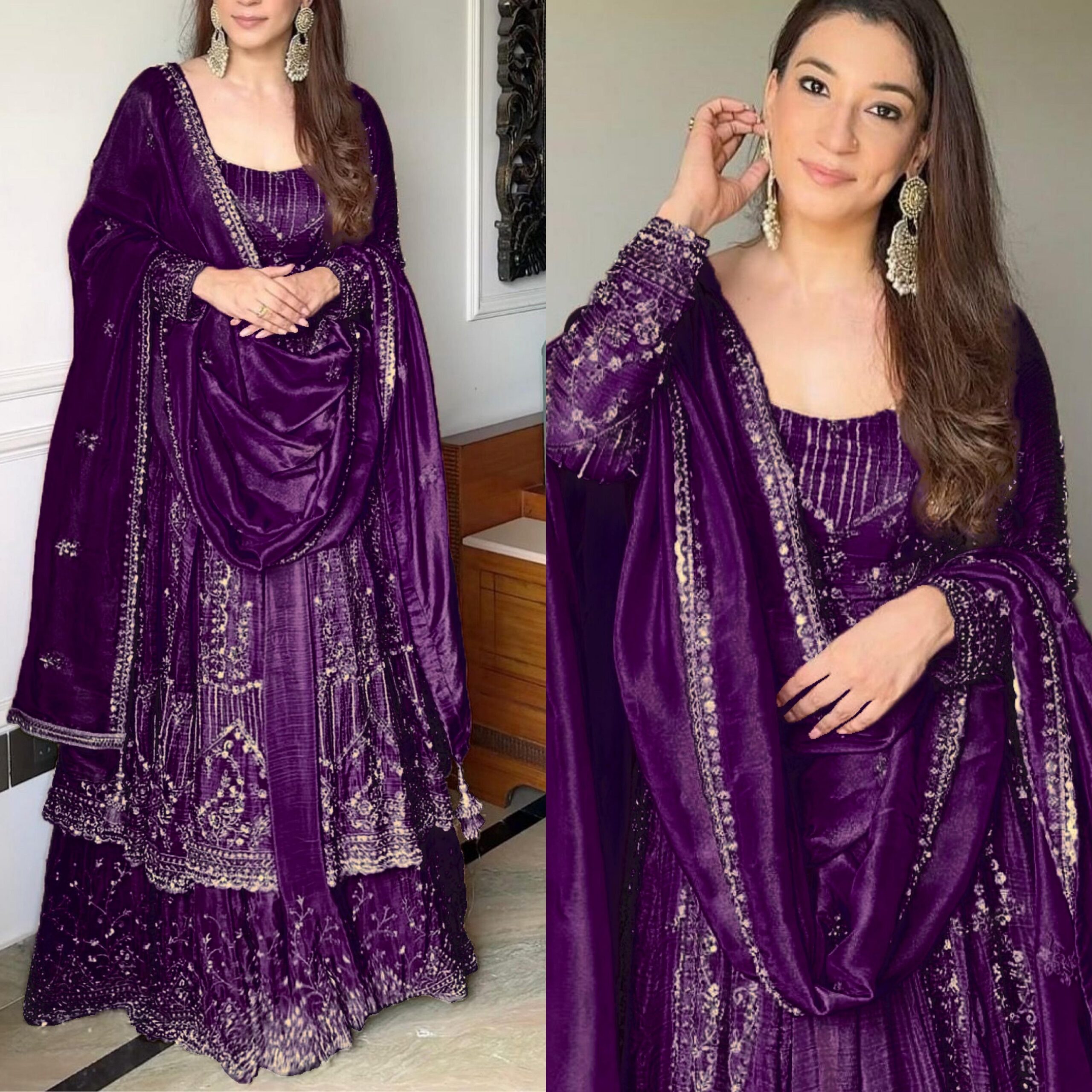 *VLM LUNCHING NEW ĐĚSIGNER PARTY WEAR LOOK GOWN WITH LAHENGHA AND EMBROIDERY WORK*