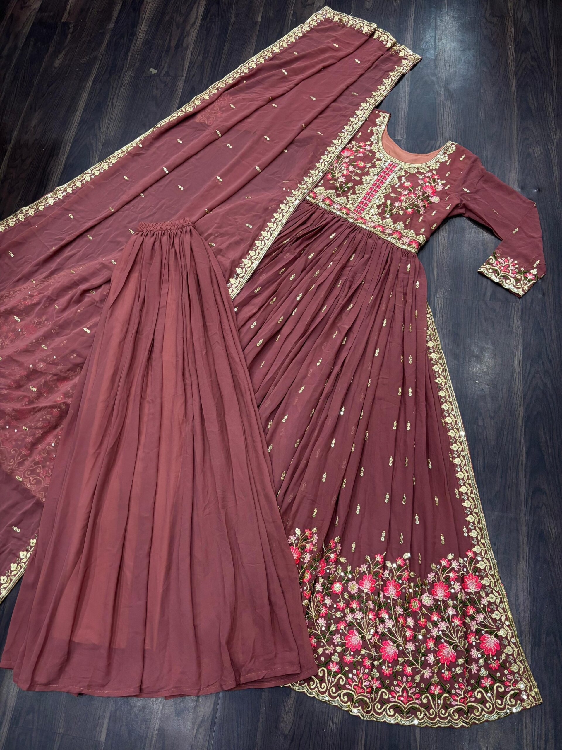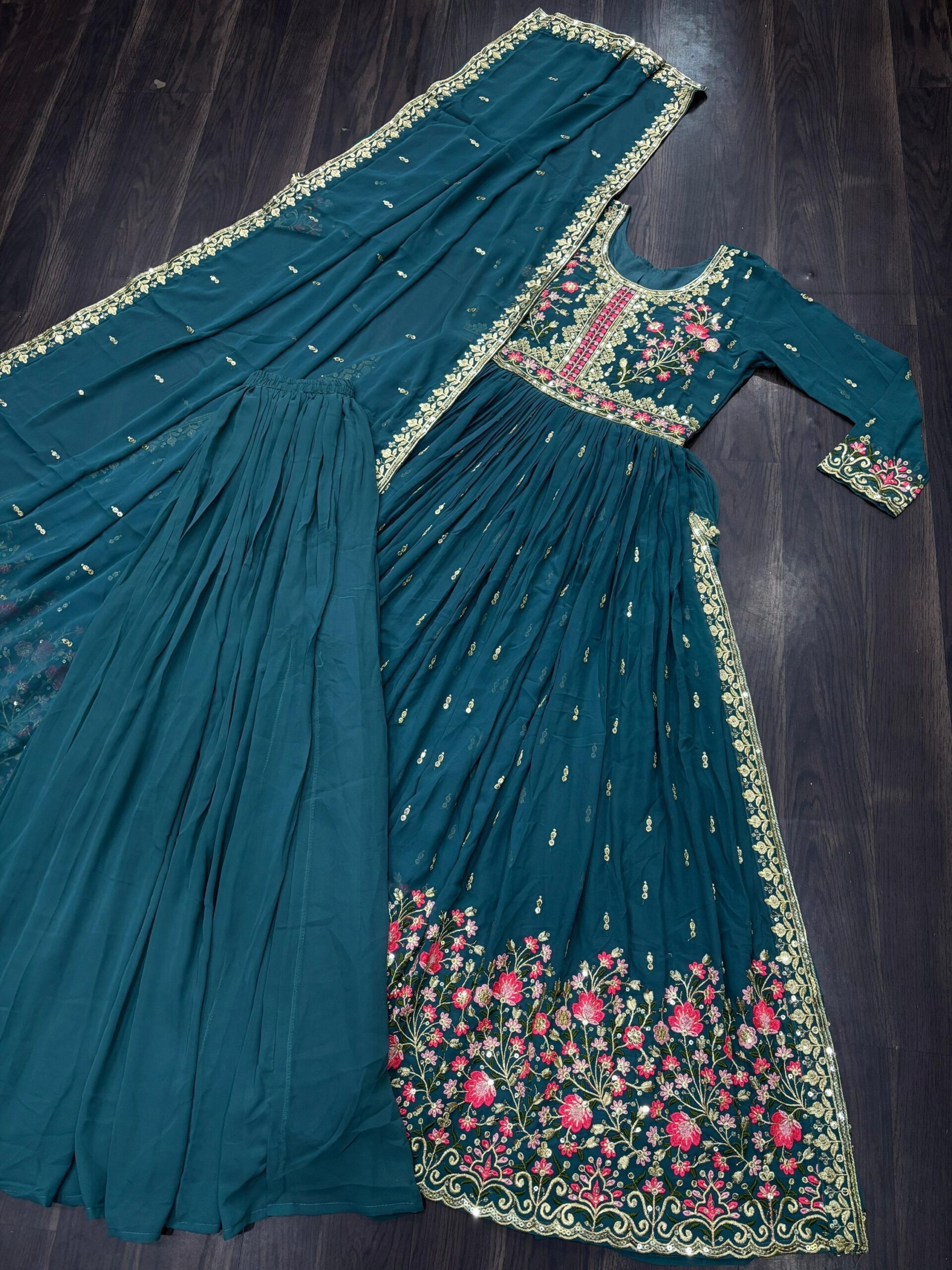 *💕💃🏻 Get ready to shine with these stunning outfit Made from Faux Georgette And Sequins Embroidered Work. Discover the perfect ensemble to add a touch of glamour to your wardrobe and stand out from the crowd 💕💃🏻*.