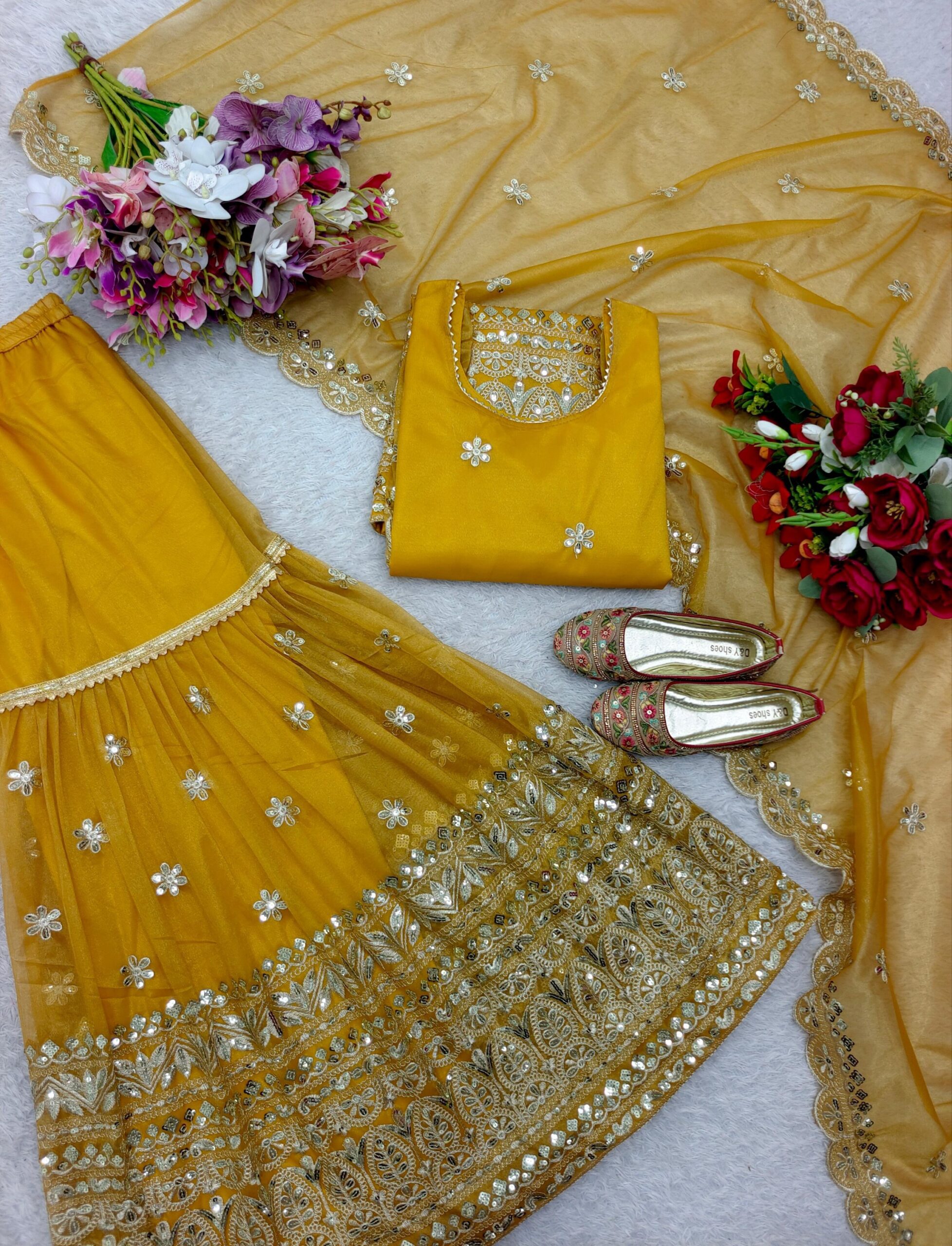 *Presenting New Twin Net Top-Sarara and Dupatta Set Fully Stitched Ready To Wear 🔥😍🥰*