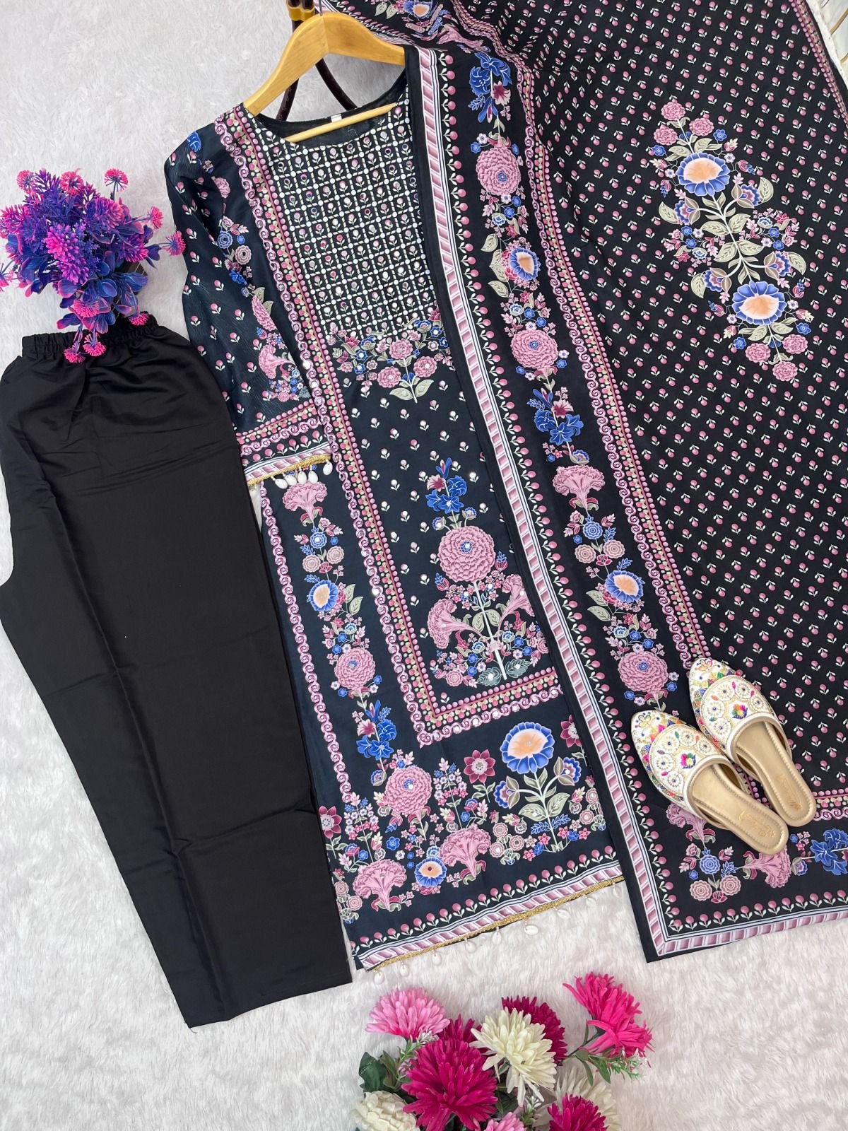 DESIGNER WEAR TRENDING TOP WITH PRINTED WORK AND REAL MIRROR WORK WITH PENT AND DUPATTA SET